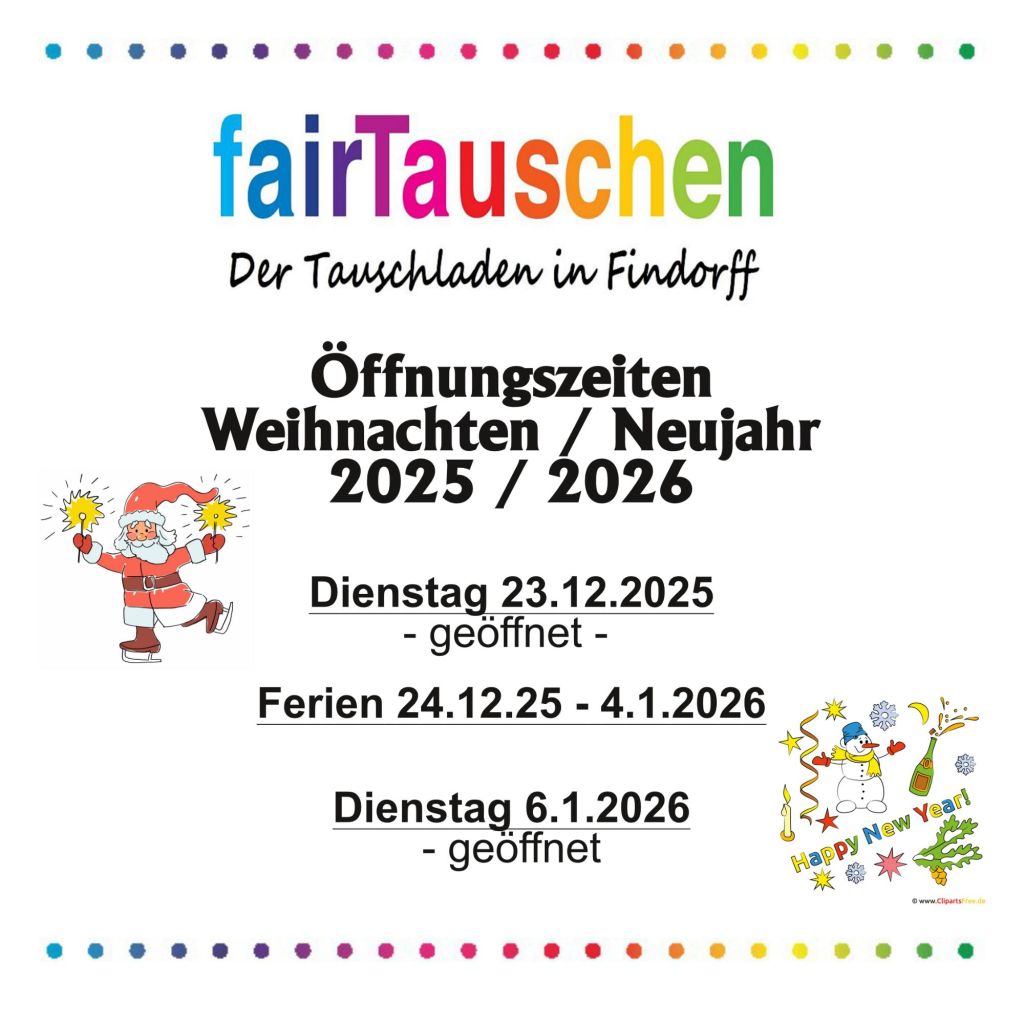 Bitte Anmeldung unter: mitmachen @ fairtauschen.de oder telefonisch vormittags: 0421-2210567 (9-13 Uhr).